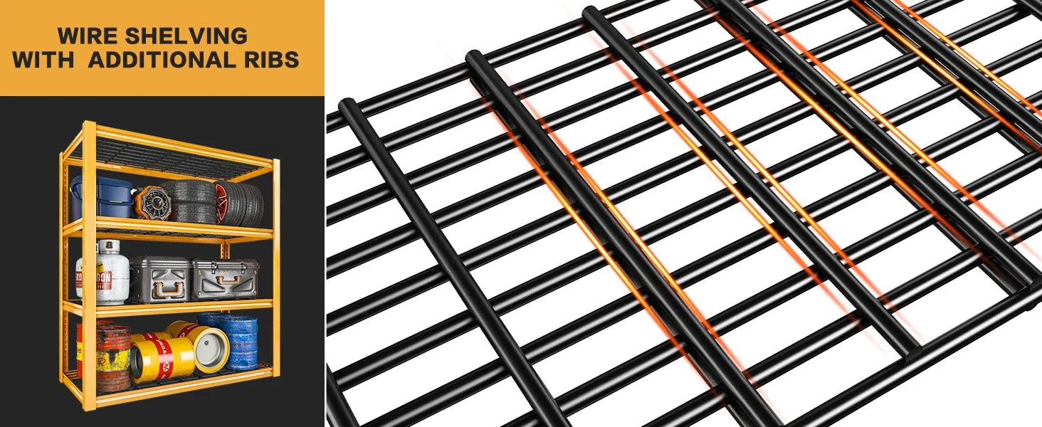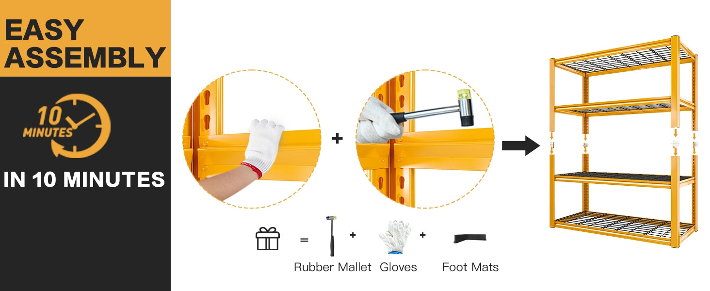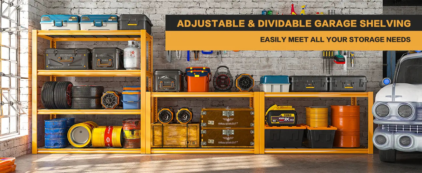 One rack can be split into 2 workbenches! Additionally, this garage shelving units can be divided into two separate shelves, with one serving as a workbench. Additional foot pads are included to protect your floor during separation.