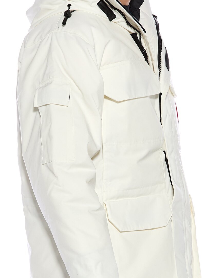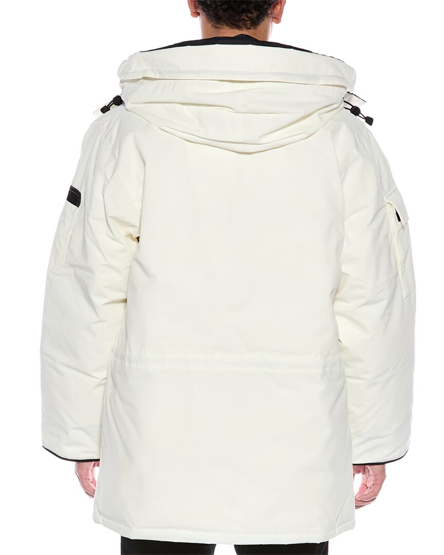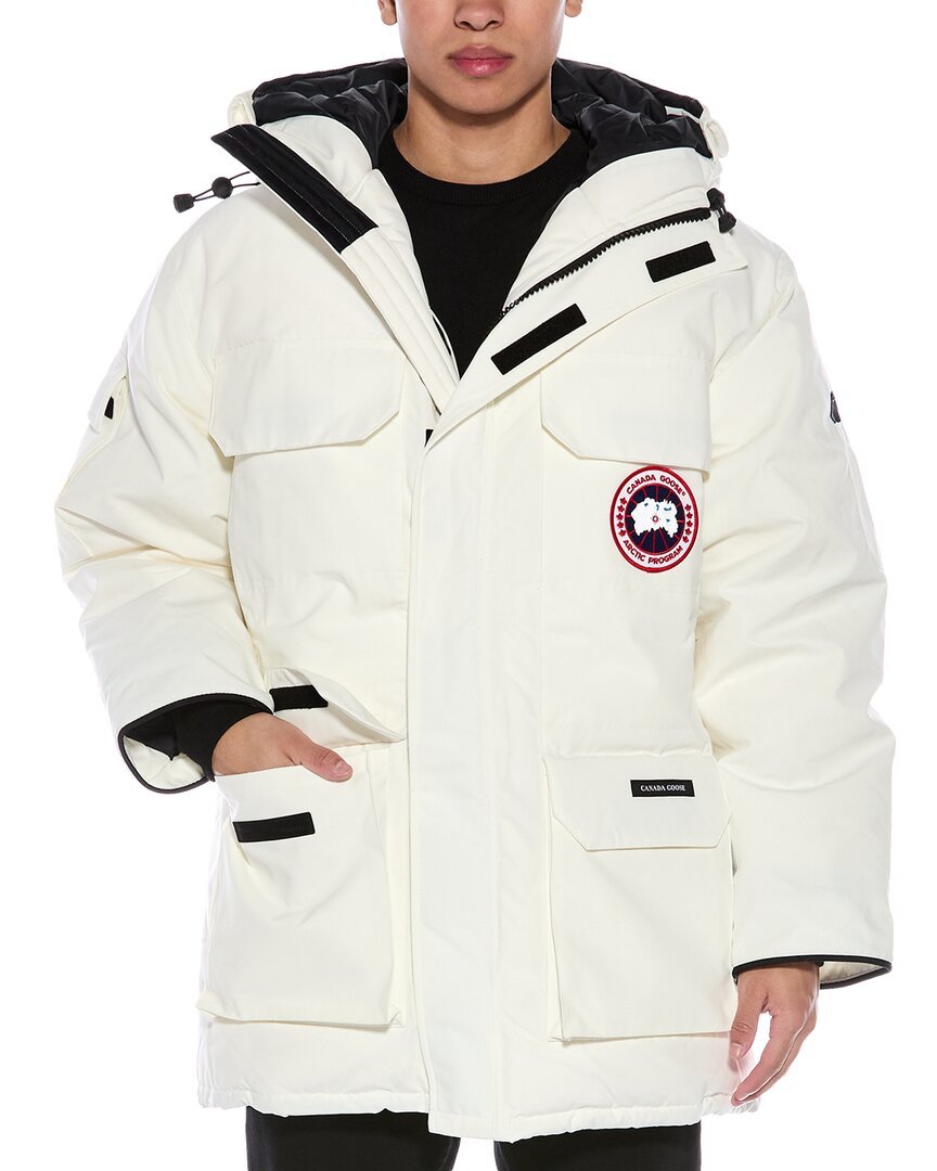 Introducing the Canada Goose Expedition II Down Parka - the ultimate outerwear piece for your winter adventures. This white parka, approximately 35 inches from shoulder to hem, is designed with function in mind, featuring an oversized fit and a range of practical details.Constructed with a shell of 83% polyester and 17% cotton, this parka is insulated with 625 fill power responsibly sourced duck down, keeping you warm in even the coldest of conditions. The design includes an adjustable down-filled hood with a removable zipper guard, webbing grab strap, interior drawcord at the waist, recessed rib-knit cuffs, and an interior back straps.With a nylon elasticized snow skirt, 6 exterior pockets, and 3 interior pockets, this Expedition II Down Parka offers both style and functionality. The parka closes with a zipper and is recommended for dry clean only. Made in Canada, this parka is a testament to Canada Goose's commitment to quality craftsmanship and design.Please note that our products are 100% genuine, and while we may source from trusted independent suppliers, we always stand by the authenticity of every product sold on our site. Embrace the spirit of adventure with the Canada Goose Expedition II Down Parka.