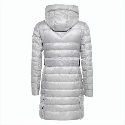 Hooded Long Padded Jacket With Quilted Design And Functional Details