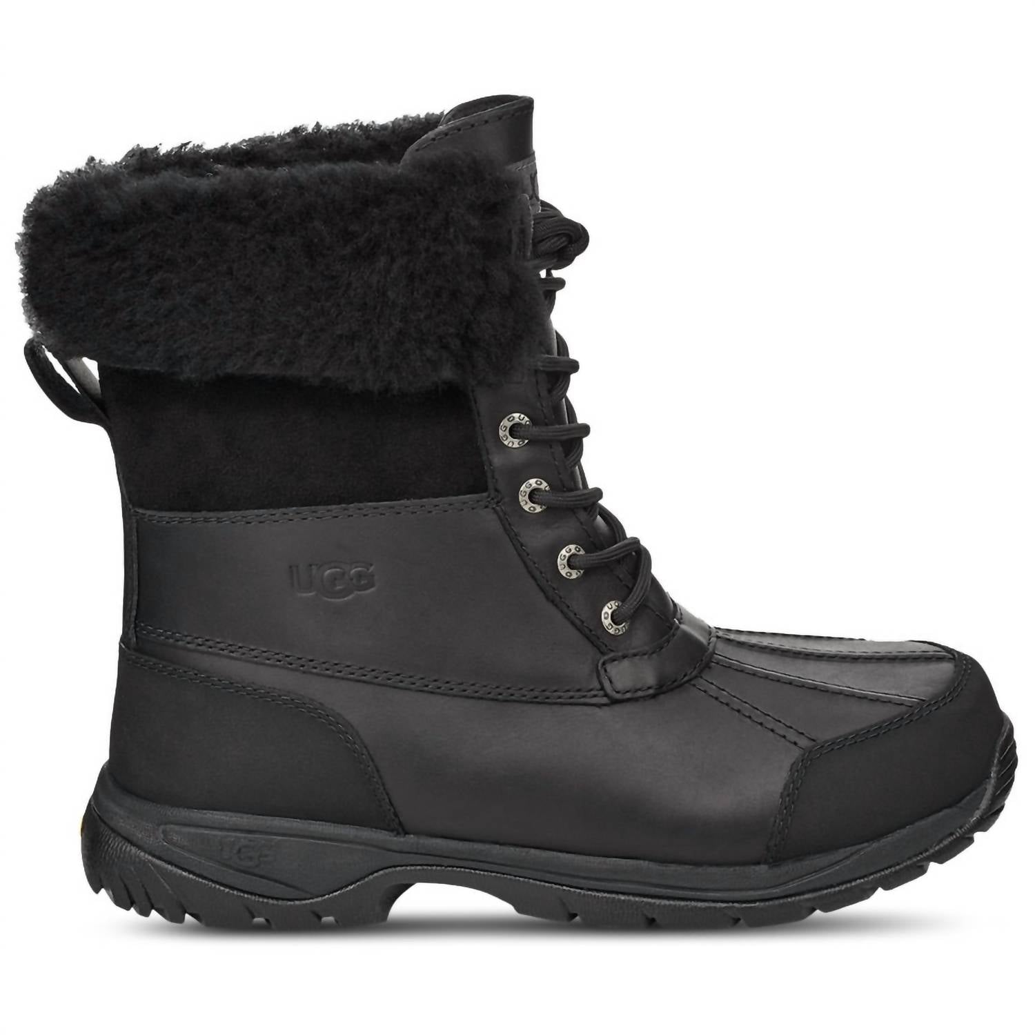 Introducing the Men's Butte Waterproof Cold Weather Boots by UGG, designed to tackle the chilliest conditions. These boots feature a cuffable shaft with an 8.5" height and boast a waterproof full-grain leather construction. Lined with 17mm UGGpure™ upcycled wool and a blend of TENCEL™ Lyocell, they ensure maximum warmth and comfort. The Vibram® outsole provides superior flexibility even in freezing temps, while the flat heel and round toe make these boots a versatile choice for both mountain and city adventures.