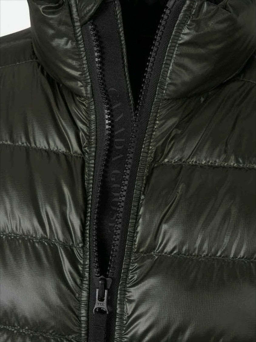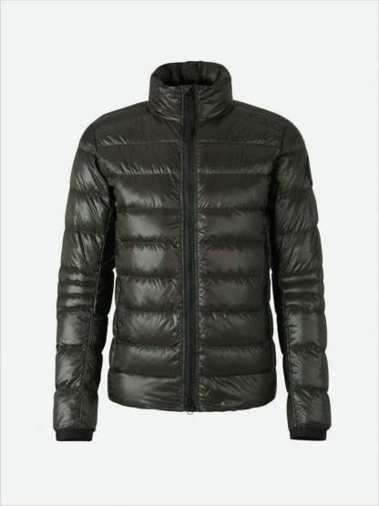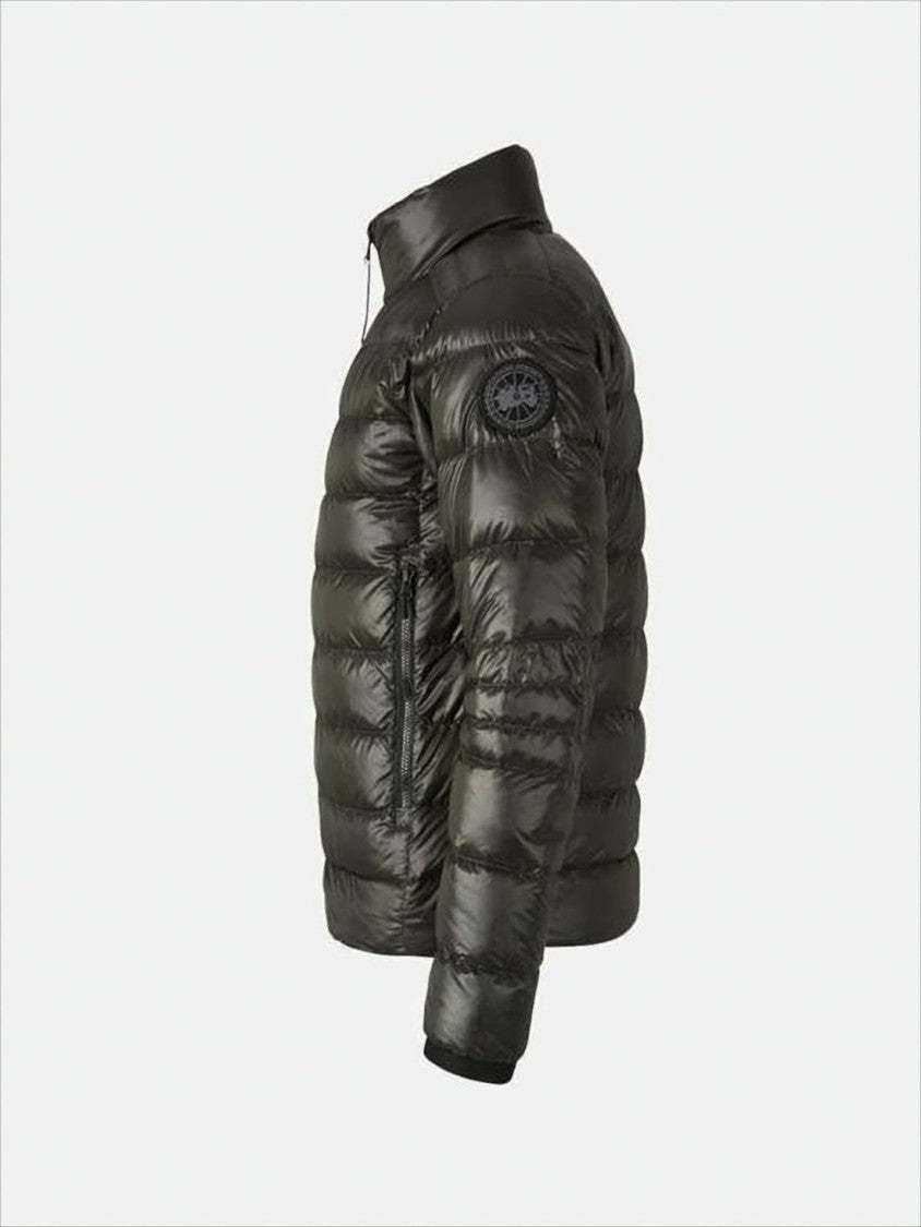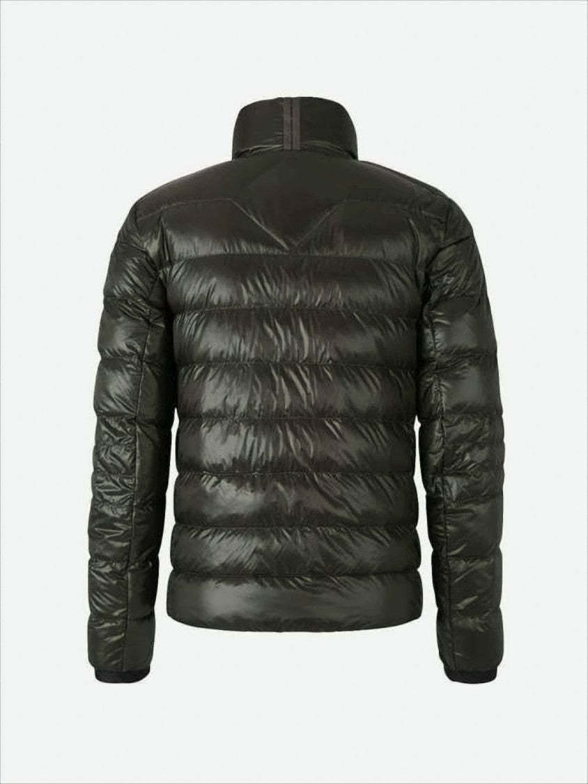 The Canada Goose padded jacket is a quintessential piece for the modern man, expertly crafted in Canada. Distinguished by its horizontal quilted design, this jacket features a sophisticated high collar and a functional front zipper closure. Zippered side pockets offer practicality, while ribbed cuffs enhance comfort. The jacket's shiny finish and sleek aesthetic make it an ideal choice for both urban and outdoor adventures.