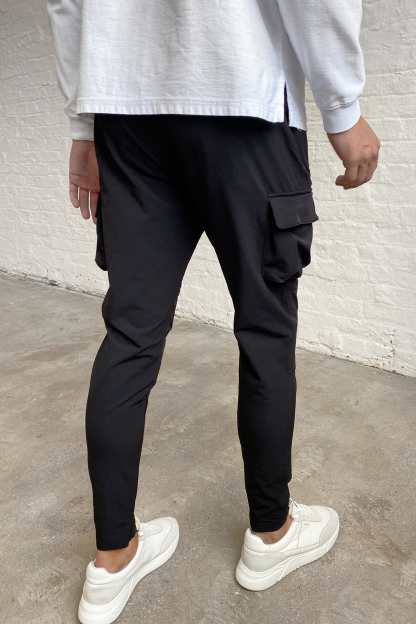 Crafted from resilient 4-way stretch mid-weight nylon, these pants feature a slim taper to the concealed zip opening, cargo pockets on the outer legs, a single zip pocket, branded matching metal hardware, and finished with silicon-dipped dyed-to-match draw cords.