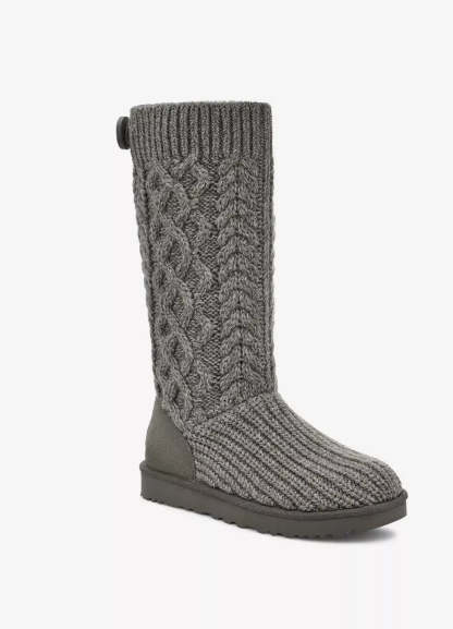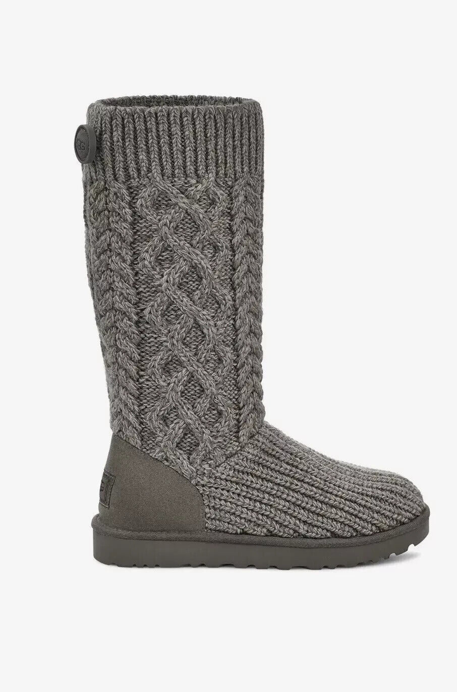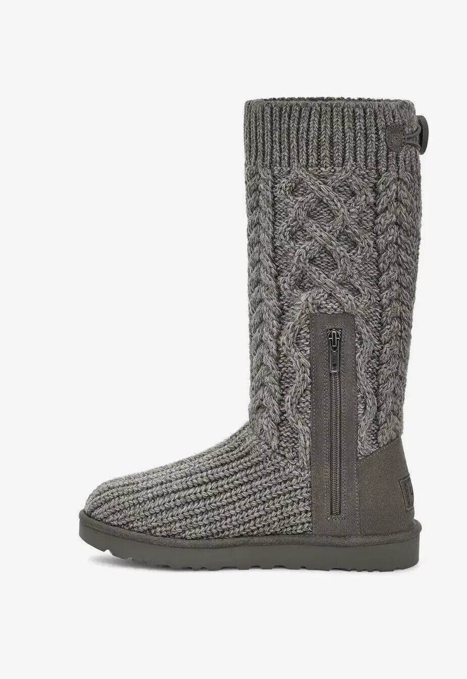 UGG Classic Cardi 1143702K Tall Boot Women's US 5 Gray Cable-Knit Pull-On FZP503