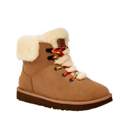The UGG Classic Mini Alpine Lace updates the iconic silhouette with a rugged, outdoors-inspired twist. Crafted with premium suede and soft UGGplush™ lining, it offers warmth and comfort in a cozy low-profile design. Rope-style alpine laces and metal eyelets add trail-ready detailing, while the Treadlite by UGG™ outsole ensures lightweight traction. This version brings together heritage comfort and functional flair for winter-ready wear.